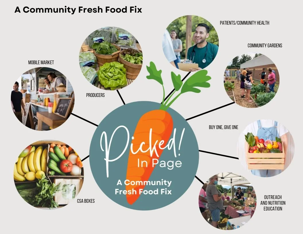 Picked In Page is a rural social enterprise designed to increase access to fresh, local food through a hybrid CSA model that serves both residents and visitors in the most underserved communities of the Valley Health region. The initiative leverages the area’s rich agricultural heritage and robust tourism economy to create a sustainable system that benefits local families, farmers, and businesses alike. Fresh food boxes, sourced from regional producers, will be distributed through innovative channels such as pop-up markets at healthcare facilities, workplace wellness programs, and a mobile market at high-traffic community hubs. These diverse distribution methods help meet people where they are and reduce barriers to access.